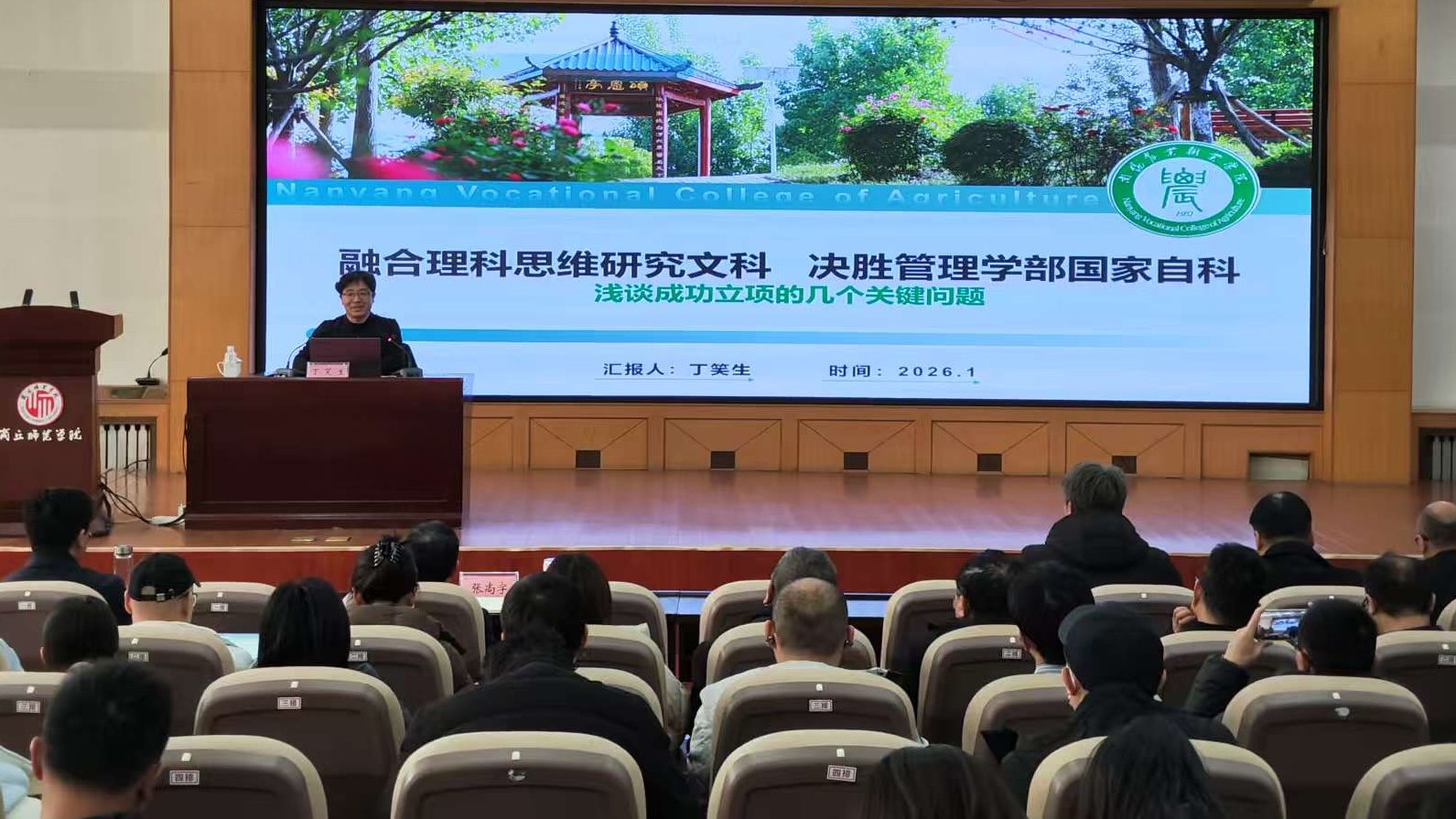 1月13日,丁笑生教授在归德楼113会议室以“融合理科思维研究文科、决胜管理学部国家自科”为题作专题学术报告。校党委书记张尚字、党委副书记刘国庚出席会议,报告会由刘国庚主持。